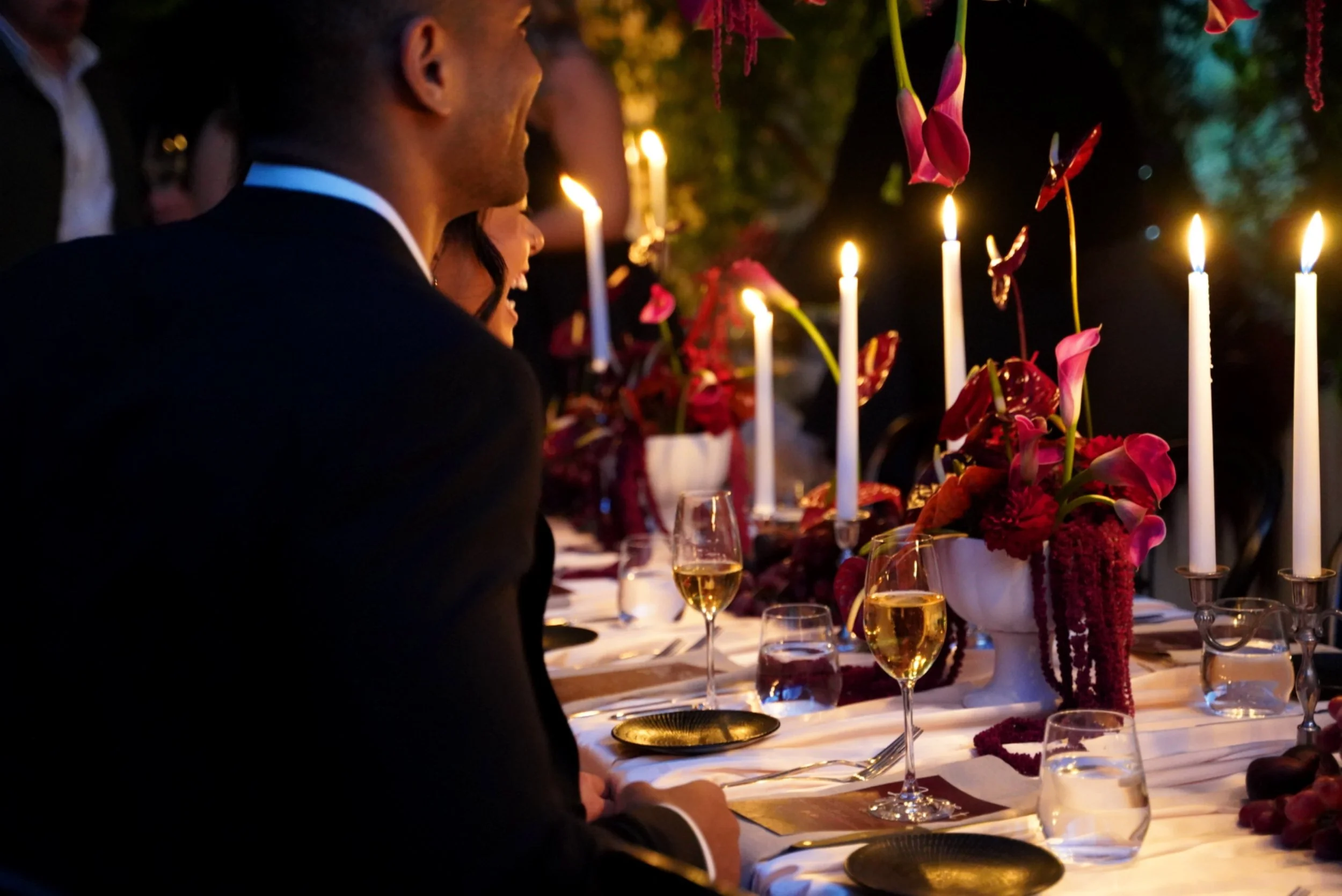 ”Layers of texture, tone, and quiet drama, where every detail tells a story. This tablescape wasn’t just set — it was styled to linger. WHERE Burgundy depth meets soft champagne sheen — a table designed to seduce the senses”